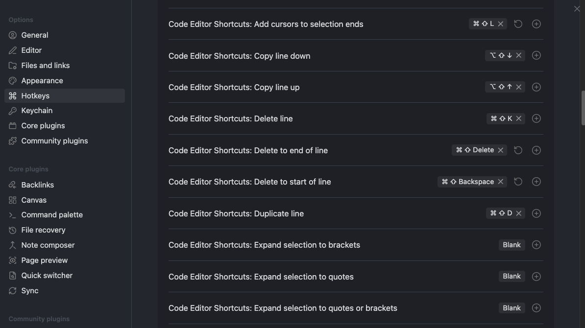 After switching to using Obsidian for note taking, I found myself always reaching for the keyboard shortcuts I had grown accustomed to within VS Code and Sublime Text. As the built-in hotkeys were limited and no such plugin existed at the time, I decided to write my own.